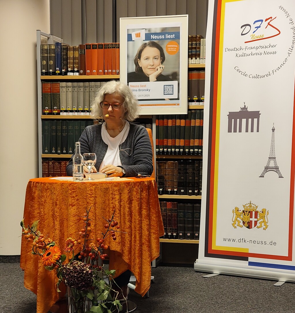 Im Rahmen der Veranstaltung der Stadtbibliothek „Neuss Liest Alina Bronski“ stellte Annette Lohkamp am 12.11.25 den Roman „Pi mal Daumen“ vor und las einige ausgesuchte Stellen daraus vor.